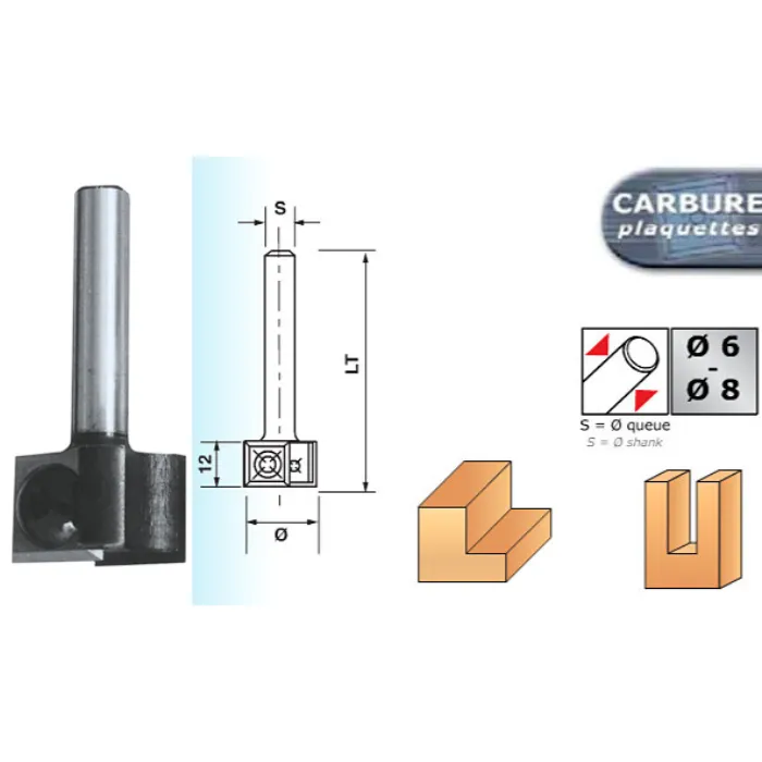 Mèche d’affleureuse à plaquettes réversibles Leman Ø 19 mm – Queue de 6 mm