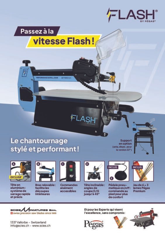 Conçue par Scies Miniatures, créateur historique de PÉGAS, la Flash 22” s’adresse aux utilisateurs qui veulent passer au niveau supérieur en capacité et en confort.