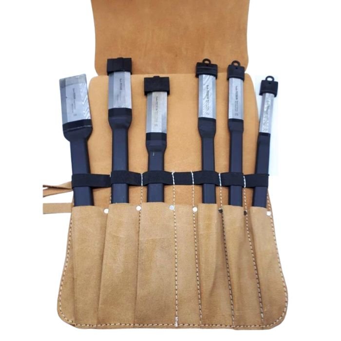 Trousse professionnelle de 4 ébauchoirs de charpentier – Fabrication française – Avec trousse cuir pleine fleur