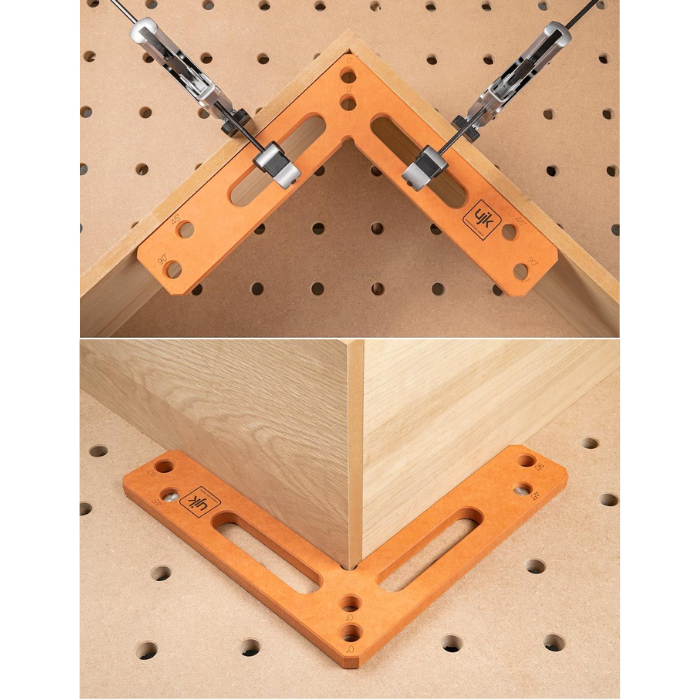 L’équerre d’assemblage UJK est un accessoire de haute précision, conçu pour simplifier le montage de caissons, cadres ou boîtes, tout en garantissant un équerrage parfait. Fabriquée en Valchromat HDF usiné CNC, elle est stable, robuste et durable. Utilisée sur un établi multifonction équipé de butées d’établi Ø 20 mm, elle devient un véritable assistant pour tous vos travaux d’assemblage ou de mise en place de guides de coupe.