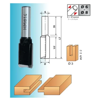 Mèche à rainer carbure droite Ø 25 LU25 LT60 – taraudée M10 type Scheer Leman